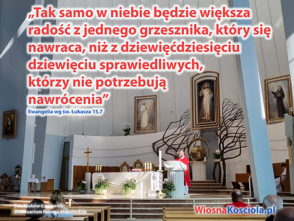 1044 Nagle zalała mnie obecność Boża i ujrzałam się naraz w Rzymie w kaplicy Ojca świętego i równocześnie byłam w kaplicy naszej, a uroczystość Ojca św. i całego Kościoła była ściśle złączona z naszą kaplicą i w szczególny sposób z naszym Zgromadzeniem, i równocześnie wzięłam udział w uroczystości w Rzymie i u nas. Ponieważ uroczystość ta była tak ściśle złączona z Rzymem, że chociaż piszę, nie mogę rozróżnić, ale tak jak jest, czyli jak widziałam. Widziałam w kaplicy naszej Pana Jezusa wystawionego w monstrancji na wielkim ołtarzu. Kaplica była uroczyście ubrana, a w dniu tym wolno było wejść do niej wszystkim ludziom, ktokolwiek chciał. Tłumy były tak wielkie, że ani okiem przejrzeć nie mogłam. Wszyscy z wielką radością brali udział w tej uroczystości, a wielu z nich otrzymało to, co pragnęło. Ta sama uroczystość była w Rzymie w pięknej świątyni i Ojciec Św. z całym duchowieństwem obchodził tę uroczystość; i nagle ujrzałam św. Piotra, który stanął pomiędzy ołtarzem i Ojcem św. Co mówił św. Piotr — nie mogłam słyszeć, lecz poznałam, że Ojciec Św. rozumiał mowę jego…